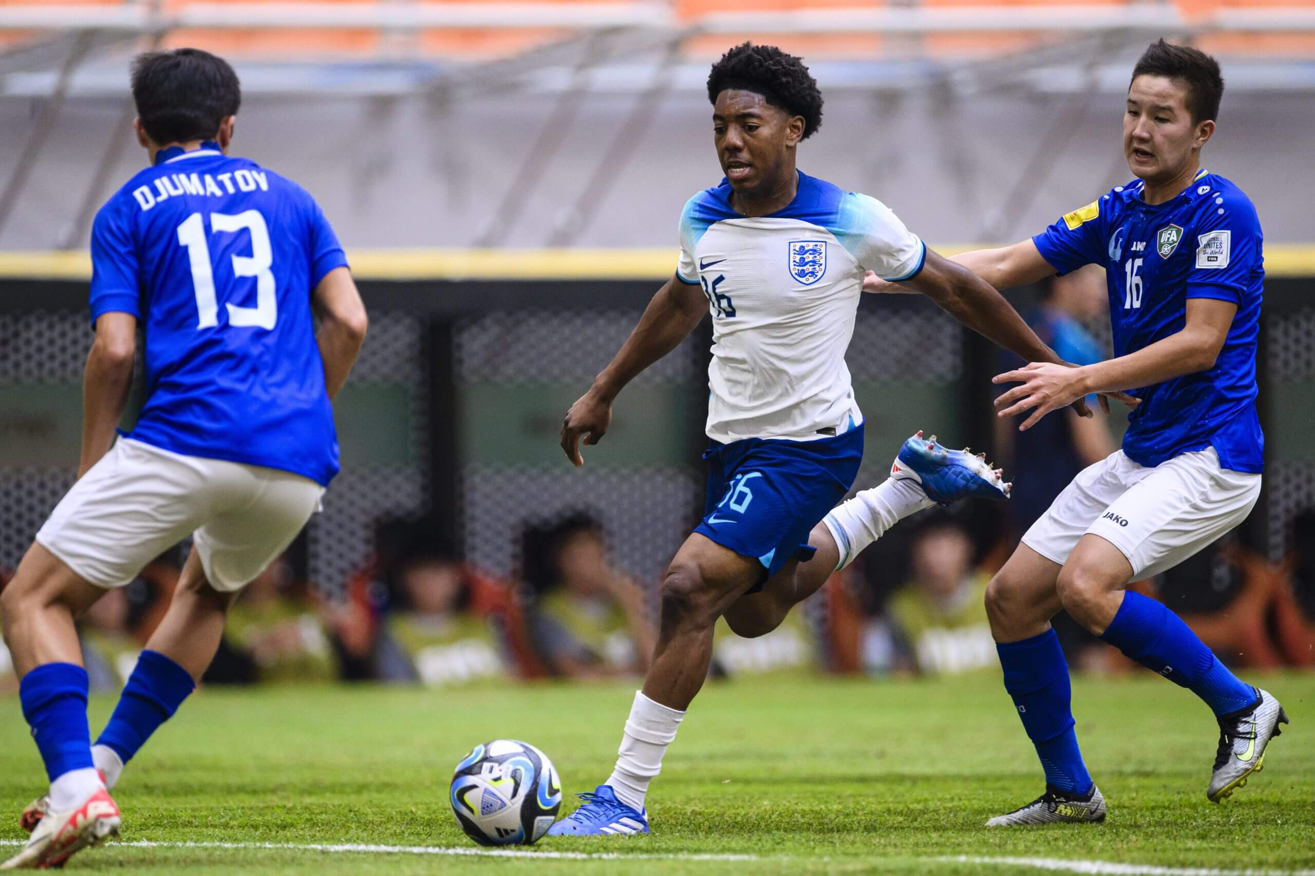 فازت أوزبكستان على منتخب إنجلترا بما في ذلك لاعب أرسنال مايلز لويس سكيلي في كأس العالم تحت 17 سنة 2023 (مارسيو ماتشادو / أوراسيا سبورت إيماجيس / غيتي إيماجز)