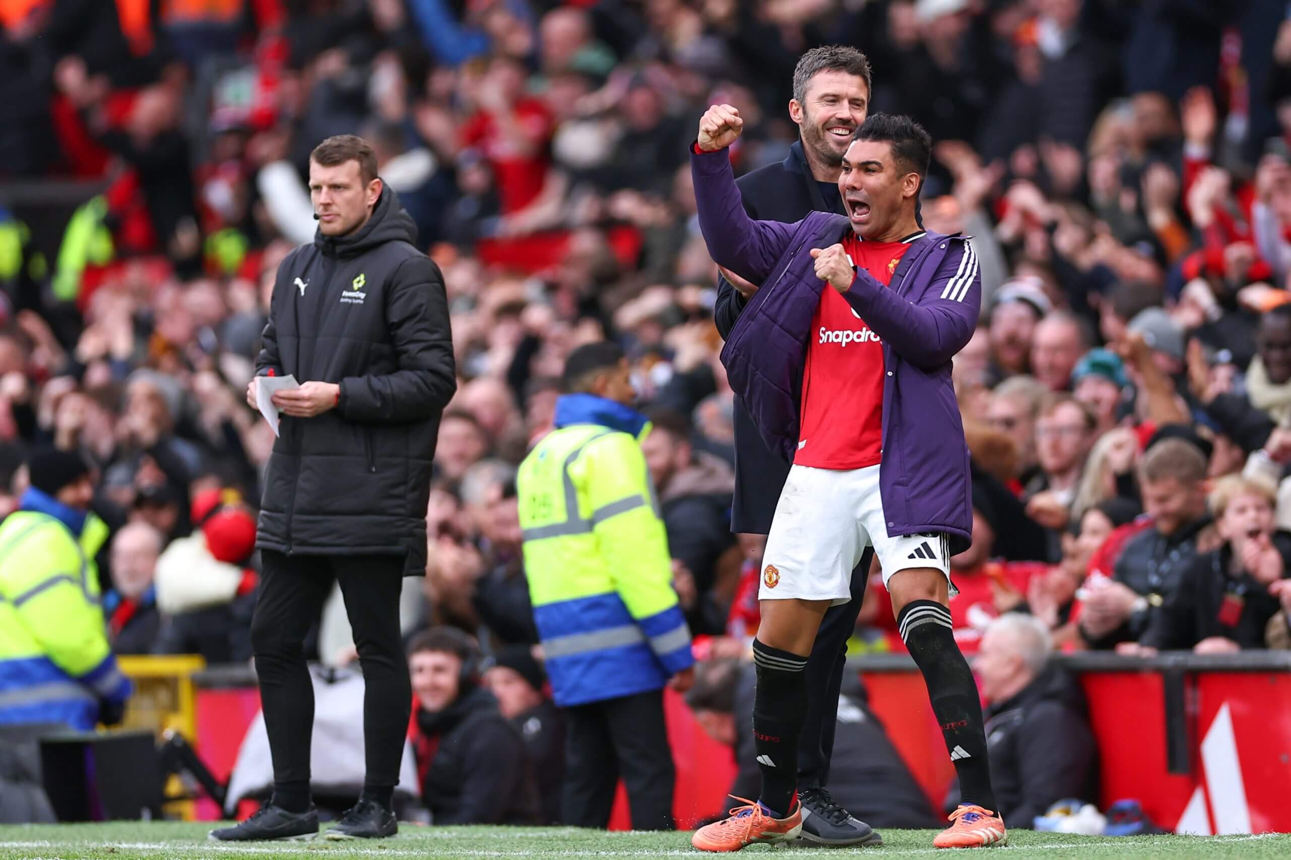 كاسيميرو يحتفل خلال ديربي مانشستر (روبي جاي بارات – AMA/Getty Images)