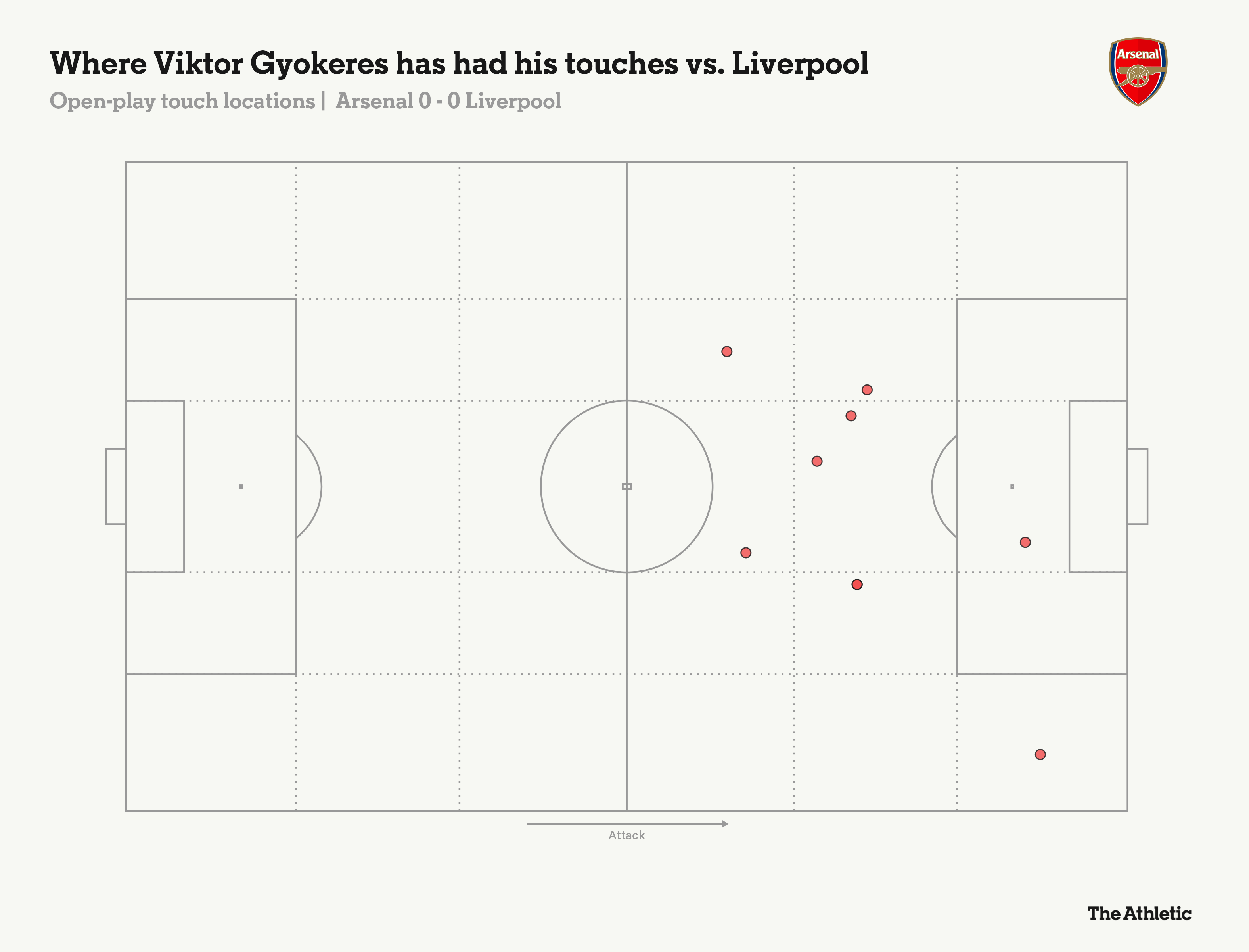 لم يكن Gyokeres أبدًا لاعبًا عالي اللمس. بعض المهاجمين الأكثر إنتاجًا ليسوا كذلك. مشكلة جيوكيريس هي أنه عندما لا يسجل، لا يبدو أنه يقدم الكثير. وفي مبارياته العشر منذ عودته من الإصابة في نوفمبر، سجل هدفًا واحدًا فقط، من ركلة جزاء ضد إيفرتون.