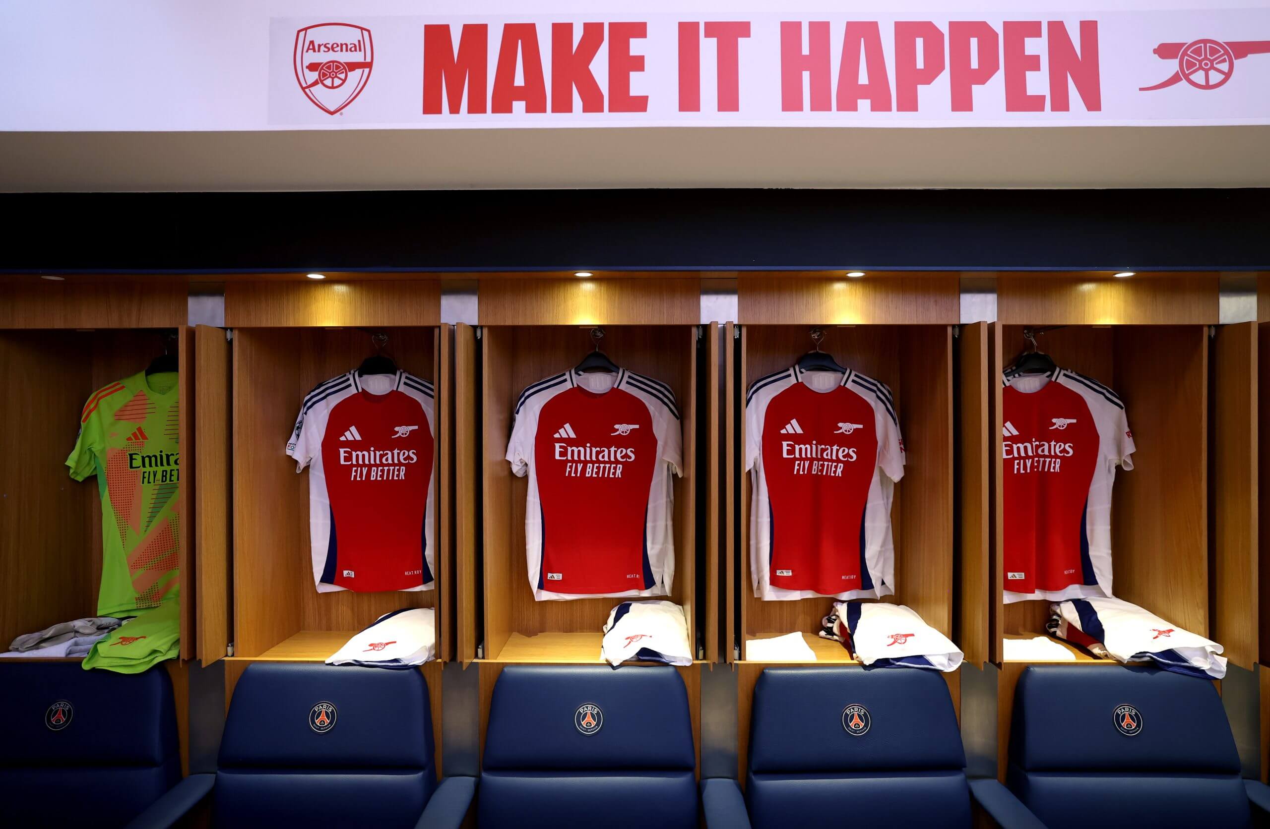 شعار “حقق ذلك” في غرفة تبديل ملابس أرسنال قبل هزيمة نصف نهائي دوري أبطال أوروبا الموسم الماضي أمام باريس سان جيرمان (لارس بارون/الاتحاد الأوروبي لكرة القدم عبر غيتي إيماجز)