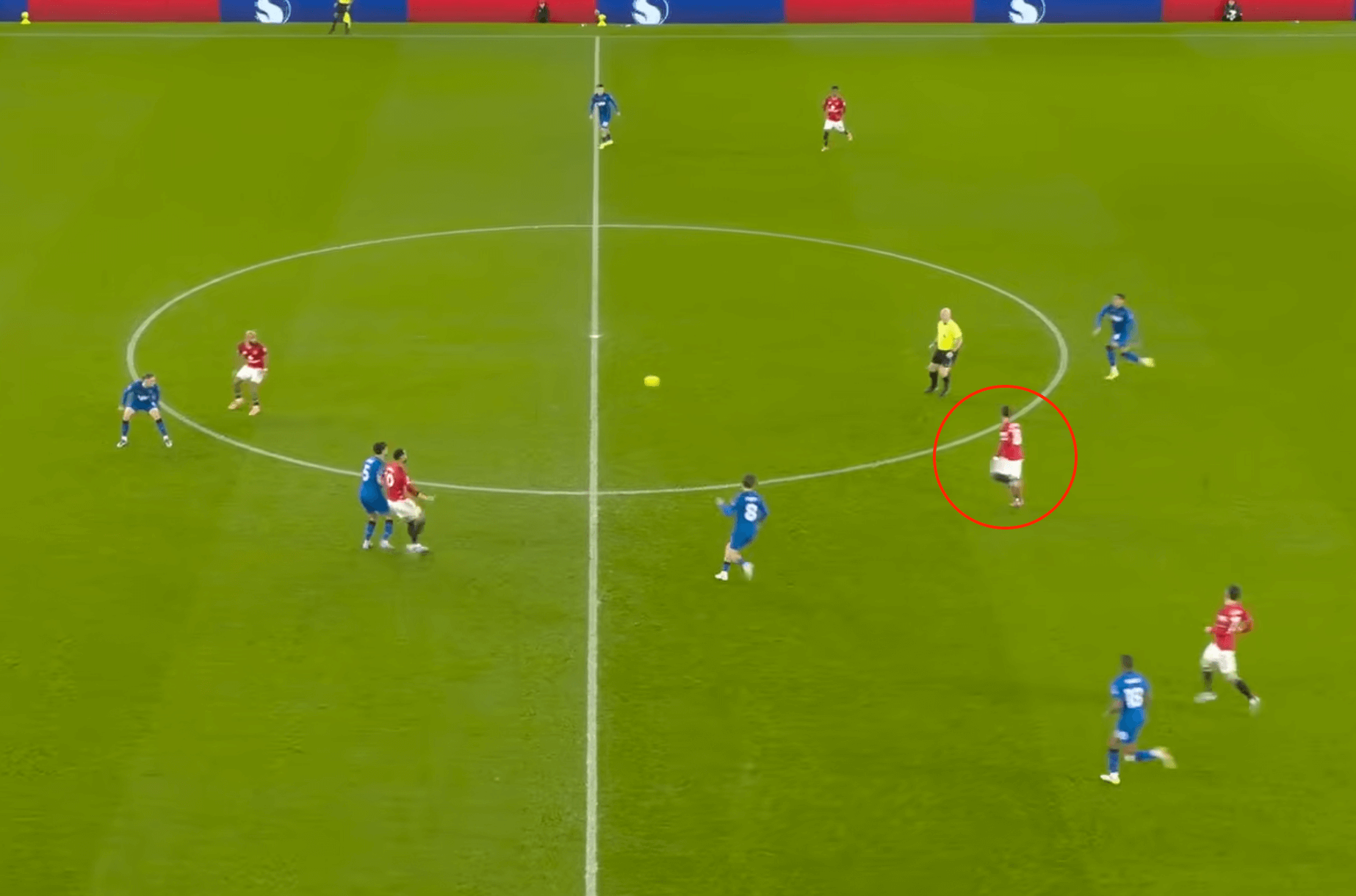 حتى الآن هذا الموسم، وفقًا لـ FBref، 42 من أصل 1225 لمسة في 16 مباراة (3.4 في المائة) كانت داخل منطقة جزاء الخصم، وهي تقريبًا نفس النسبة المئوية للموسم السابق (82 في 2649 دقيقة، 3.1 في المائة)، حيث بدأ أموريم في تعديل تمركزه. في المقابل، في موسم 2022-2023، عندما احتل يونايتد المركز الثالث، كان هذا العدد 149 في 2408 دقيقة (6.2%).