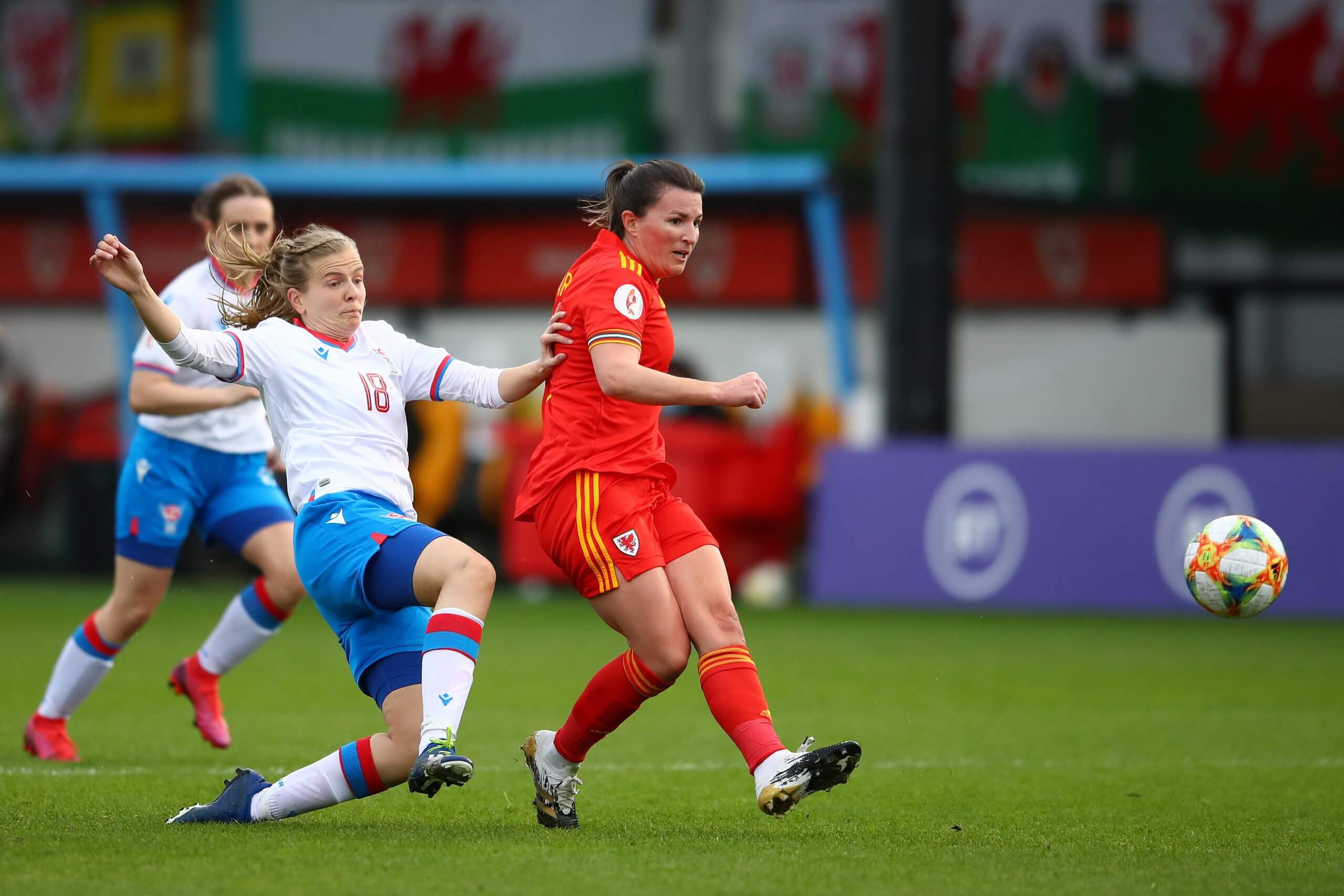 هيلين وارد تسجل الهدف الأول لويلز في مرمى جزر فارو خلال تصفيات بطولة أمم أوروبا 2020 للسيدات (مايكل ستيل / غيتي إيماجز)