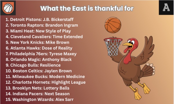 هل تتذكر عندما بدا مونتي ويليامز وكأنه يخدع ديترويت؟ قام بيكرستاف بتحويل بيستونز (15-2) على الفور. يبدو فريق رابتورز (13-5) وكأنه فريق جديد بفضل إنجرام. لقد منحهم أسلوب The Heat الجديد الأمل في مرحلة ما بعد جيمي بتلر. وعلى الكافاليين أن يحبوا الشرق غير المستقر.